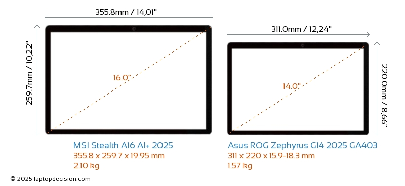 HDMIAmbos Stealth A16 AI+ 2025 y ROG Zephyrus G14 2025 GA403 cuentan con un puerto HDMI (1x HDMI 2.1) para conectar a monitores externos.