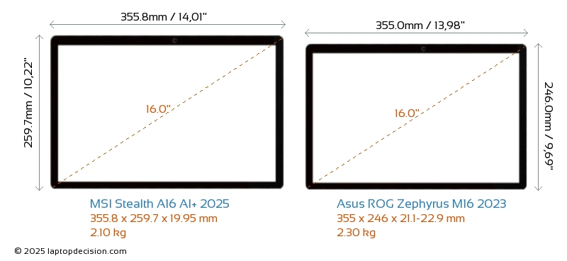 HDMIAmbos Stealth A16 AI+ 2025 y ROG Zephyrus M16 2023 cuentan con un puerto HDMI (1x HDMI 2.1) para conectar a monitores externos.