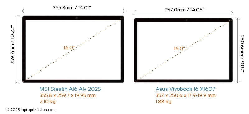 HDMIAmbos Stealth A16 AI+ 2025 y Vivobook 16 X1607 cuentan con un puerto HDMI (1x HDMI 2.1) para conectar a monitores externos.