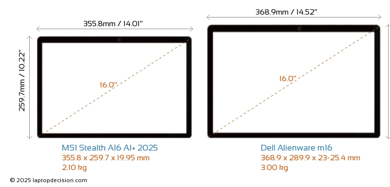 HDMIAmbos Stealth A16 AI+ 2025 y Alienware m16 cuentan con un puerto HDMI (1x HDMI 2.1) para conectar a monitores externos.