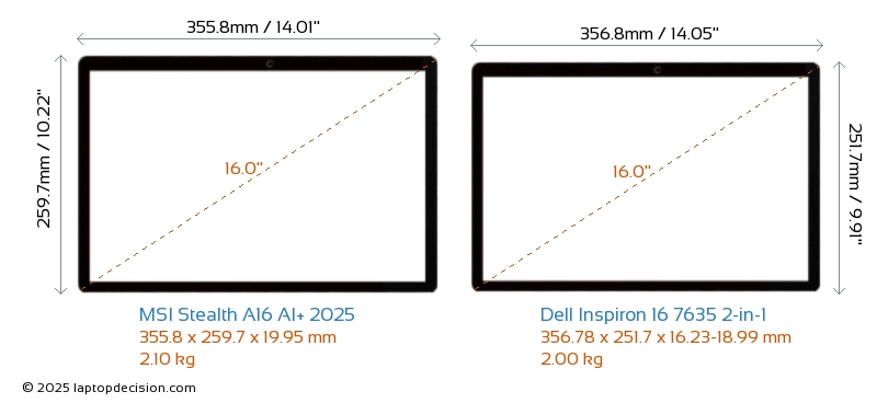 Wifi Stealth A16 AI+ 2025 cuenta con un estándar de Wi-Fi más avanzado v7, proporcionando conexiones inalámbricas más rápidas y fiables en comparación con Inspiron 16 7635 2-in-1 (v6E).