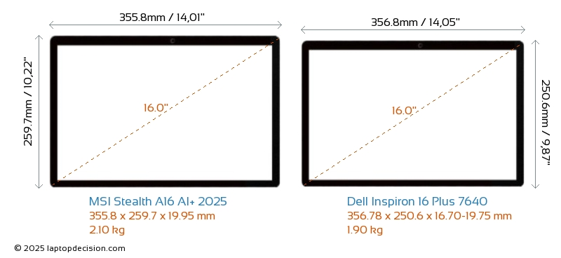 USBAmbos Stealth A16 AI+ 2025 y Inspiron 16 Plus 7640 cuentan con 2x USB 3.2 puertos USB-A.Ambos Stealth A16 AI+ 2025 y Inspiron 16 Plus 7640 cuentan con 1x USB 4.0 puertos USB Type-C.