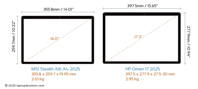 HDMIAmbos Stealth A16 AI+ 2025 y Omen 17 2025 cuentan con un puerto HDMI (1x HDMI 2.1) para conectar a monitores externos.