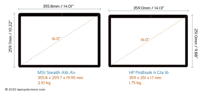 HDMIAmbos Stealth A16 AI+ y ProBook 4 G1a 16 cuentan con un puerto HDMI (1x HDMI 2.1) para conectar a monitores externos.