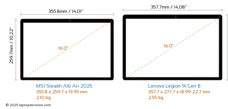 HDMIAmbos Stealth A16 AI+ 2025 y Legion 9i Gen 8 cuentan con un puerto HDMI (1x HDMI 2.1) para conectar a monitores externos.