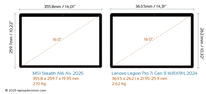 HDMIAmbos Stealth A16 AI+ 2025 y Legion Pro 7i Gen 9 16IRX9H, 2024 cuentan con un puerto HDMI (1x HDMI 2.1) para conectar a monitores externos.