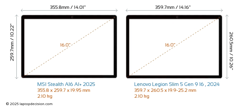 HDMIAmbos Stealth A16 AI+ 2025 y Legion Slim 5 Gen 9 16 , 2024 cuentan con un puerto HDMI (1x HDMI 2.1) para conectar a monitores externos.