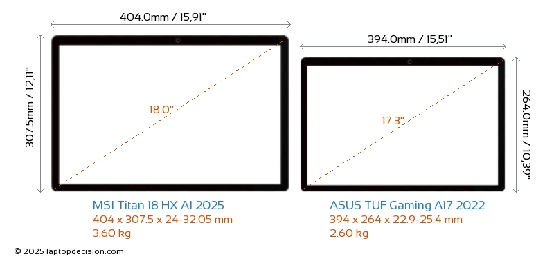Thunderbolt Titan 18 HX AI 2025 está equipado con un puerto Thunderbolt 5. TUF Gaming A17 2022 no tiene puerto Thunderbolt.