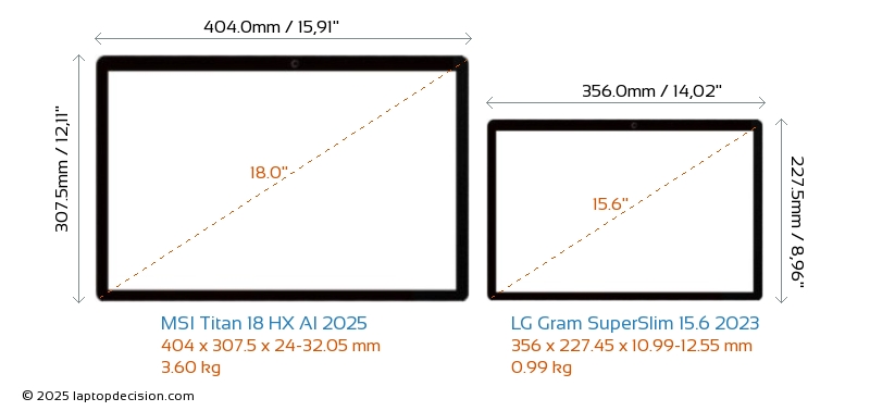 HDMI Titan 18 HX AI 2025 cuenta con un puerto HDMI (1x HDMI 2.1) para conectar a monitores externos. Gram SuperSlim 15.6 2023 no tiene puerto HDMI.