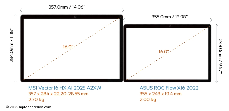 Thunderbolt Vector 16 HX AI 2025 A2XW está equipado con un puerto Thunderbolt 5. ROG Flow X16 2022 no tiene puerto Thunderbolt.