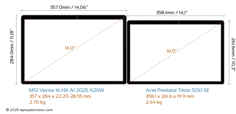 HDMIAmbos Vector 16 HX AI 2025 A2XW y Predator Triton 500 SE cuentan con un puerto HDMI (1x HDMI 2.1) para conectar a monitores externos.
