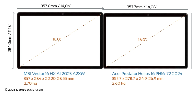 HDMIAmbos Vector 16 HX AI 2025 A2XW y Predator Helios 16 PH16-72 2024 cuentan con un puerto HDMI (1x HDMI 2.1) para conectar a monitores externos.