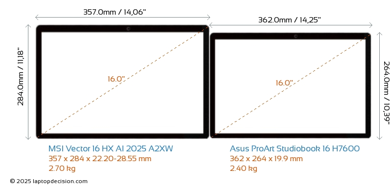 HDMIAmbos Vector 16 HX AI 2025 A2XW y ProArt Studiobook 16 H7600 cuentan con un puerto HDMI (1x HDMI 2.1) para conectar a monitores externos.