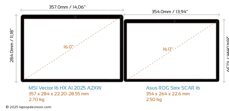 USBAmbos Vector 16 HX AI 2025 A2XW y ROG Strix SCAR 16 cuentan con 2x USB 3.2 puertos USB-A.Ambos Vector 16 HX AI 2025 A2XW y ROG Strix SCAR 16 cuentan con 2x USB 4.0 puertos USB Type-C.