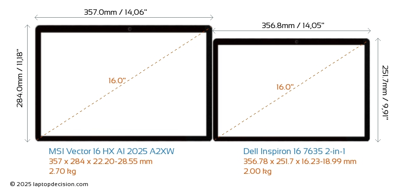 Thunderbolt Vector 16 HX AI 2025 A2XW está equipado con un puerto Thunderbolt 5. Inspiron 16 7635 2-in-1 no tiene puerto Thunderbolt.