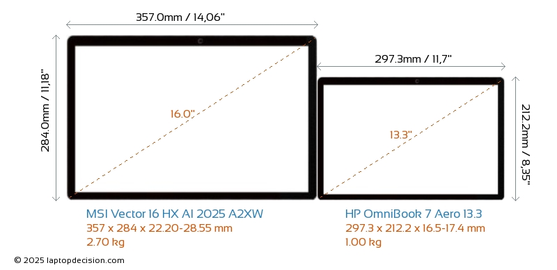 HDMIAmbos Vector 16 HX AI 2025 A2XW y OmniBook 7 Aero 13.3 cuentan con un puerto HDMI (1x HDMI 2.1) para conectar a monitores externos.
