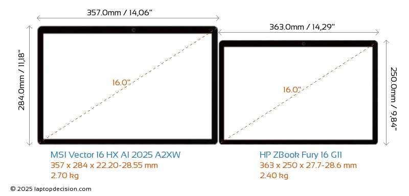 HDMIAmbos Vector 16 HX AI 2025 A2XW y ZBook Fury 16 G11 cuentan con un puerto HDMI (1x HDMI 2.1) para conectar a monitores externos.