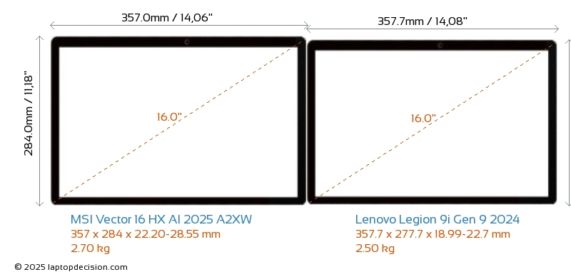 HDMIAmbos Vector 16 HX AI 2025 A2XW y Legion 9i Gen 9 2024 cuentan con un puerto HDMI (1x HDMI 2.1) para conectar a monitores externos.