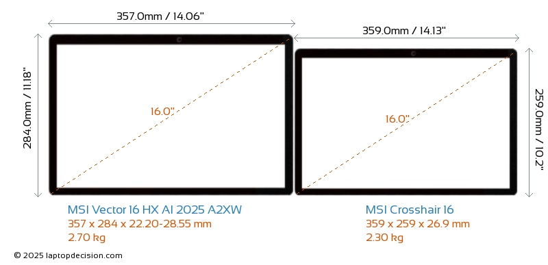 HDMIAmbos Vector 16 HX AI 2025 A2XW y Crosshair 16 cuentan con un puerto HDMI (1x HDMI 2.1) para conectar a monitores externos.