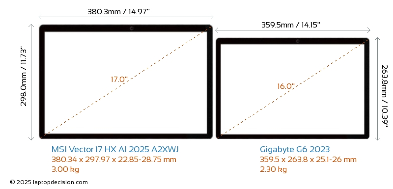 HDMIAmbos Vector 17 HX AI 2025 A2XWJ y G6 2023 cuentan con un puerto HDMI (1x HDMI 2.1) para conectar a monitores externos.