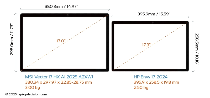 HDMIAmbos Vector 17 HX AI 2025 A2XWJ y Envy 17 2024 cuentan con un puerto HDMI (1x HDMI 2.1) para conectar a monitores externos.