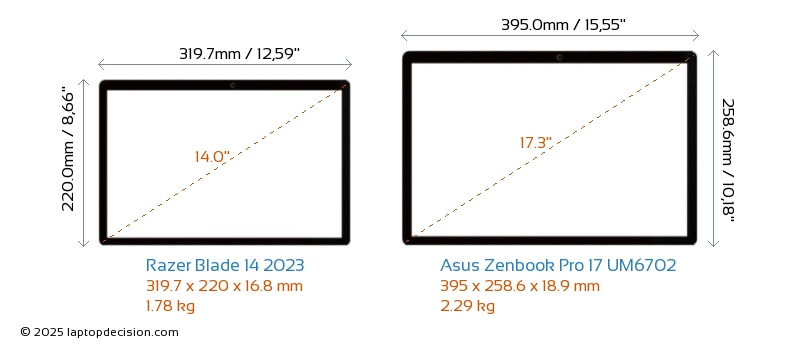 ThunderboltNinguno de los dos Blade 14 2023 ni Zenbook Pro 17 UM6702 tiene puerto Thunderbolt.
