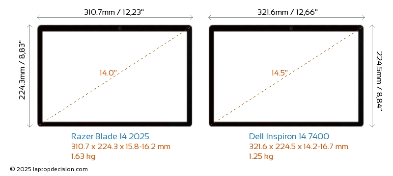 ThunderboltInspiron 14 7400 está equipado con un puerto Thunderbolt 4. Blade 14 2025 no tiene puerto Thunderbolt.