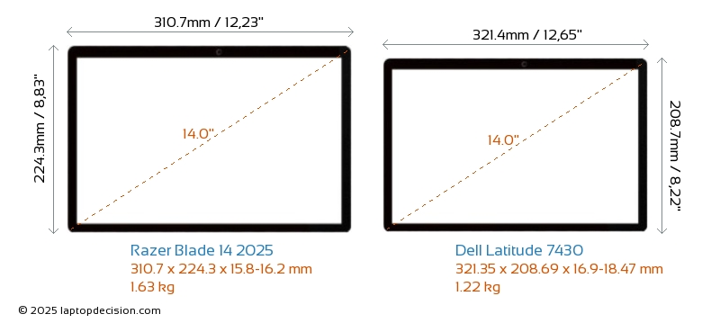 ThunderboltLatitude 7430 está equipado con un puerto Thunderbolt 4. Blade 14 2025 no tiene puerto Thunderbolt.