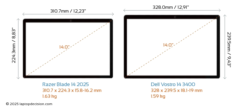 ThunderboltNinguno de los dos Blade 14 2025 ni Vostro 14 3400 tiene puerto Thunderbolt.