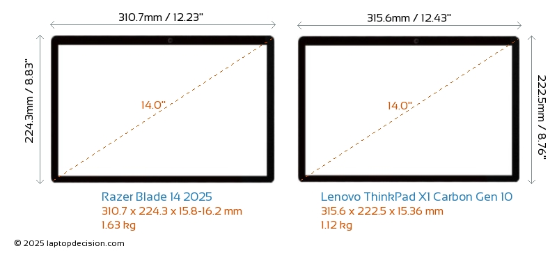 ThunderboltThinkPad X1 Carbon Gen 10 está equipado con un puerto Thunderbolt 4. Blade 14 2025 no tiene puerto Thunderbolt.
