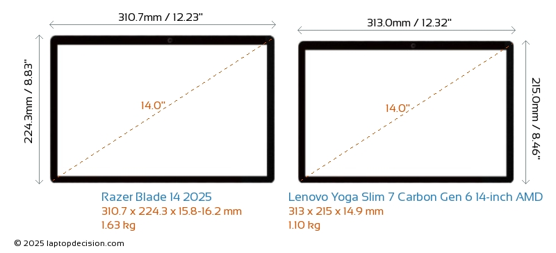 ThunderboltNinguno de los dos Blade 14 2025 ni Yoga Slim 7 Carbon Gen 6 14-inch AMD tiene puerto Thunderbolt.