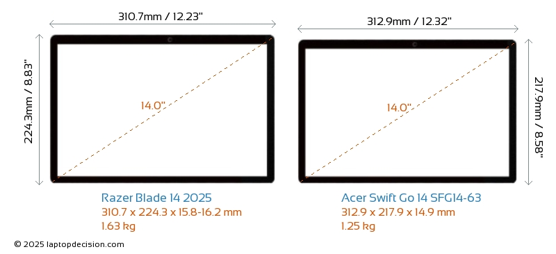 USBAmbos Blade 14 2025 y Swift Go 14 SFG14-63 cuentan con 2x USB 3.2 puertos USB-A.Ambos Blade 14 2025 y Swift Go 14 SFG14-63 cuentan con 2x USB 4.0 puertos USB Type-C.