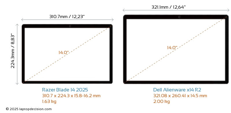 HDMIAmbos Blade 14 2025 y Alienware x14 R2 cuentan con un puerto HDMI (1x HDMI 2.1) para conectar a monitores externos.