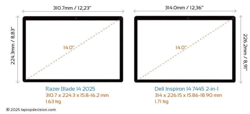 ThunderboltNinguno de los dos Blade 14 2025 ni Inspiron 14 7445 2-in-1 tiene puerto Thunderbolt.