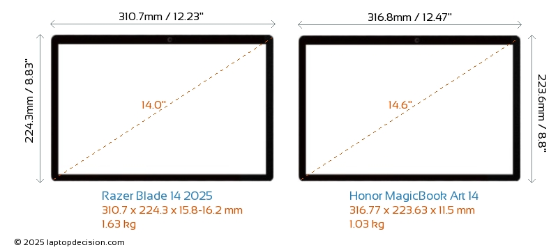 HDMIAmbos Blade 14 2025 y MagicBook Art 14 cuentan con un puerto HDMI (1x HDMI 2.1) para conectar a monitores externos.