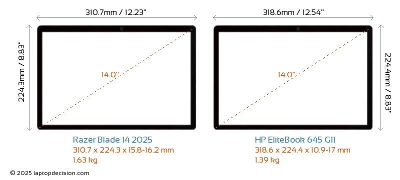USBAmbos Blade 14 2025 y EliteBook 645 G11 cuentan con 2x USB 3.2 puertos USB-A.Ambos Blade 14 2025 y EliteBook 645 G11 cuentan con 2x USB 4.0 puertos USB Type-C.