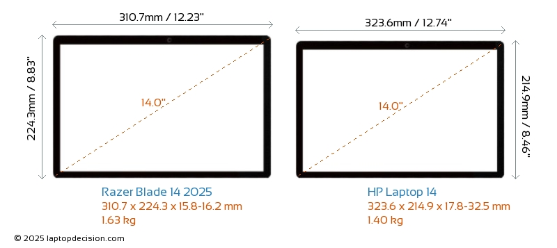 HDMIAmbos Blade 14 2025 y Laptop 14 cuentan con un puerto HDMI. Blade 14 2025 ofrece 1x HDMI 2.1, mientras que Laptop 14 ofrece 1x HDMI 1.4.