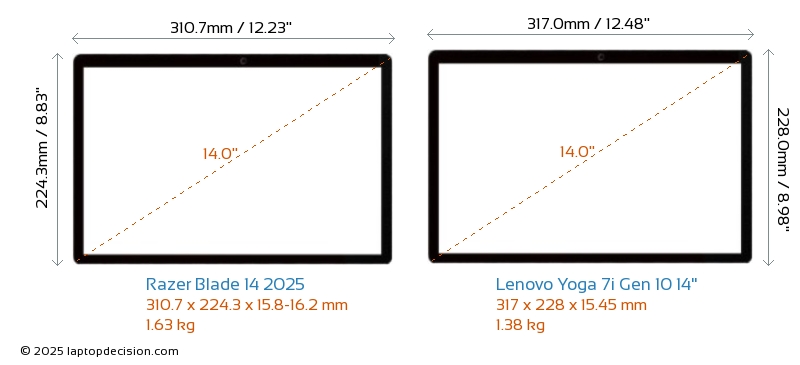 Thunderbolt Yoga 7i Gen 10 14" está equipado con un puerto Thunderbolt 4. Blade 14 2025 no tiene puerto Thunderbolt.