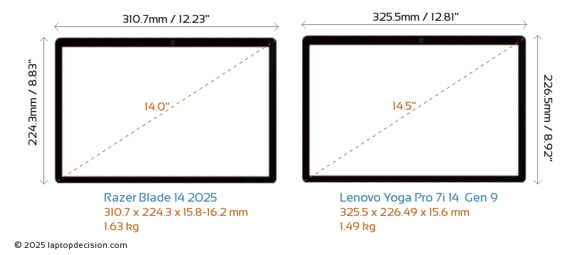 HDMIAmbos Blade 14 2025 y Yoga Pro 7i 14 Gen 9 cuentan con un puerto HDMI (1x HDMI 2.1) para conectar a monitores externos.