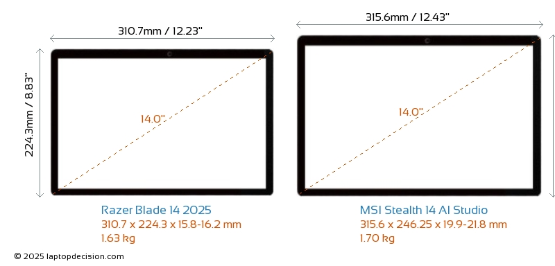 Thunderbolt Stealth 14 AI Studio está equipado con un puerto Thunderbolt 4. Blade 14 2025 no tiene puerto Thunderbolt.
