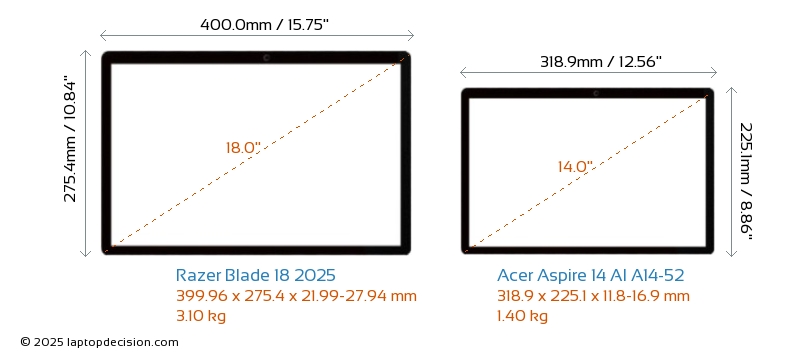 HDMIAmbos Blade 18 2025 y Aspire 14 AI A14-52 cuentan con un puerto HDMI (1x HDMI 2.1) para conectar a monitores externos.