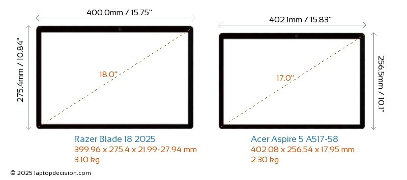 HDMIAmbos Blade 18 2025 y Aspire 5 A517-58 cuentan con un puerto HDMI (1x HDMI 2.1) para conectar a monitores externos.