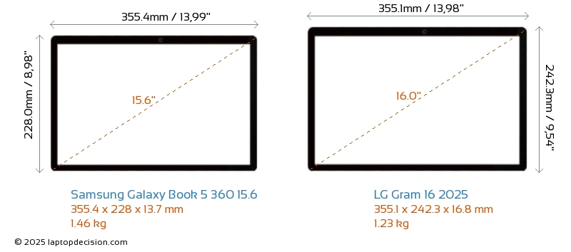 USBAmbos Galaxy Book 5 360 15.6 y Gram 16 2025 tienen puertos USB-A. Galaxy Book 5 360 15.6 tiene 1x USB 3.2 puertos USB-A, mientras que Gram 16 2025 tiene 2x USB 3.2 puertos USB-A.Ambos Galaxy Book 5 360 15.6 y Gram 16 2025 cuentan con 2x USB 4.0 puertos USB Type-C.