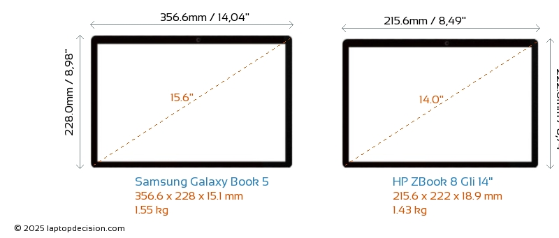 USBAmbos Galaxy Book 5 y ZBook 8 G1i 14" cuentan con 2x USB 3.2 puertos USB-A.Ambos Galaxy Book 5 y ZBook 8 G1i 14" tienen puertos USB Type-C. Galaxy Book 5 tiene 2x USB 4.0 puertos USB Type-C, mientras que ZBook 8 G1i 14" tiene 3x USB 4.0 puertos USB Type-C.