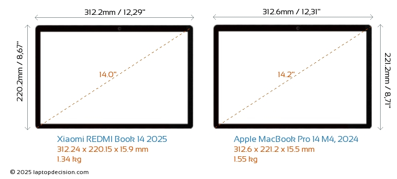 Thunderbolt MacBook Pro 14 M4, 2024 está equipado con un puerto Thunderbolt 4. REDMI Book 14 2025 no tiene puerto Thunderbolt.