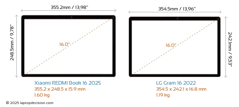USBAmbos REDMI Book 16 2025 y Gram 16 2022 cuentan con 2x USB 3.2 puertos USB-A.Ambos REDMI Book 16 2025 y Gram 16 2022 cuentan con 2x USB 4.0 puertos USB Type-C.