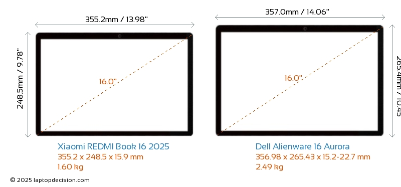 USBAmbos REDMI Book 16 2025 y Alienware 16 Aurora cuentan con 2x USB 3.2 puertos USB-A.Ambos REDMI Book 16 2025 y Alienware 16 Aurora cuentan con 2x USB 4.0 puertos USB Type-C.