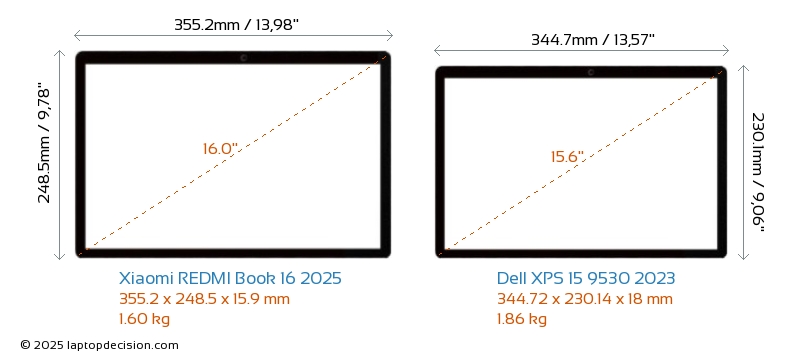 HDMI REDMI Book 16 2025 cuenta con un puerto HDMI (1x HDMI 2.1) para conectar a monitores externos. XPS 15 9530 2023 no tiene puerto HDMI.