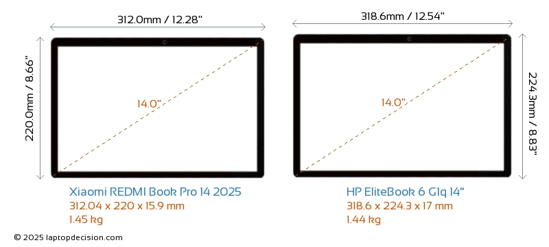 HDMIAmbos REDMI Book Pro 14 2025 y EliteBook 6 G1q 14" cuentan con un puerto HDMI (1x HDMI 2.1) para conectar a monitores externos.