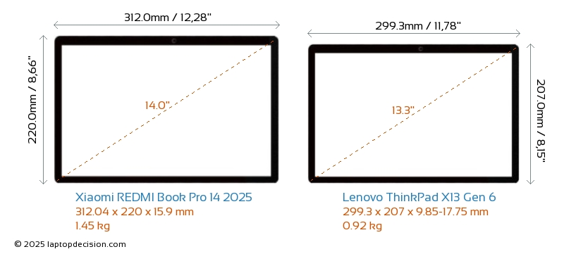 HDMIAmbos REDMI Book Pro 14 2025 y ThinkPad X13 Gen 6 cuentan con un puerto HDMI (1x HDMI 2.1) para conectar a monitores externos.